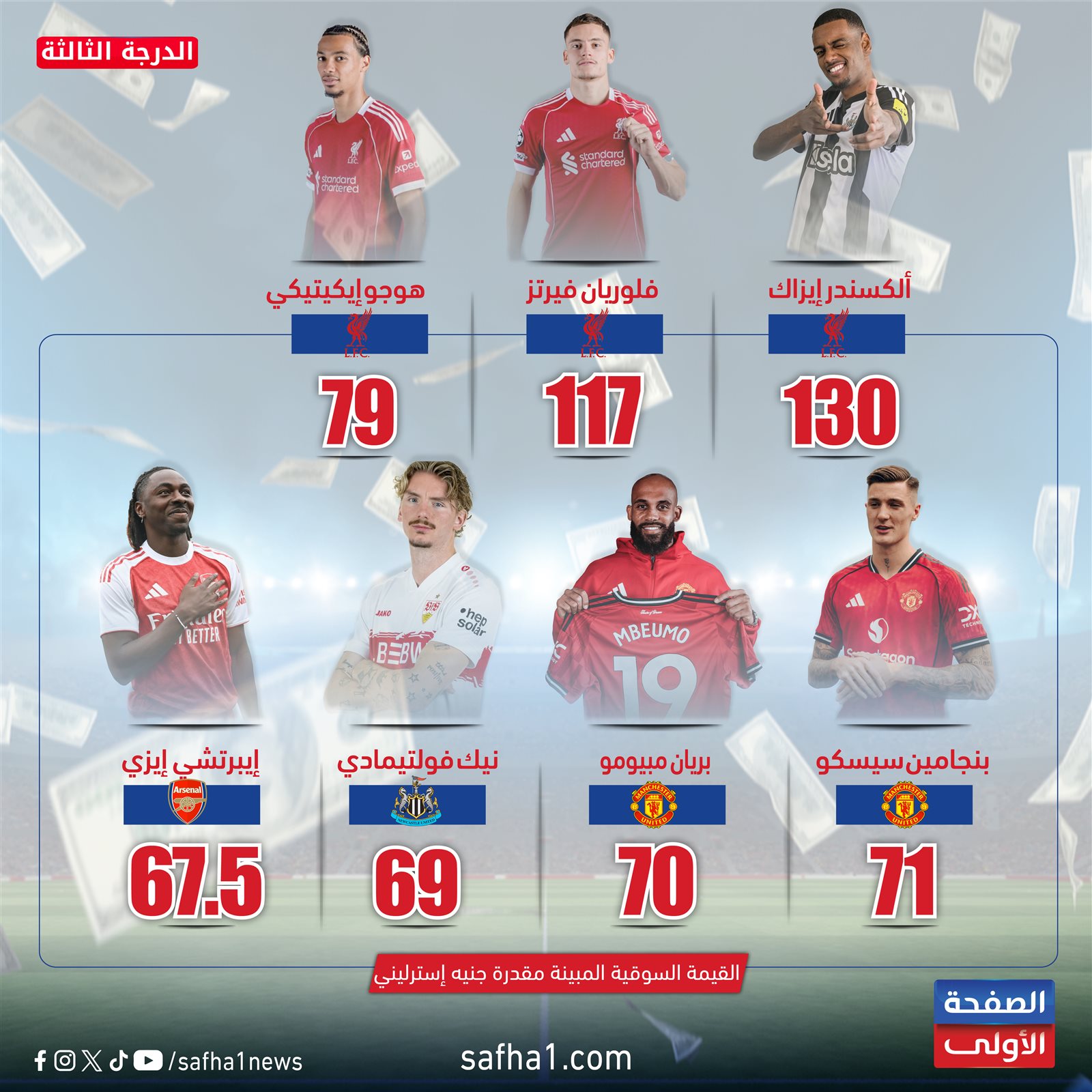 1- ألكسندر إيزاك من نيوكاسل يونايتد إلى ليفربول مقابل 130 مليون جنيه إسترليني.