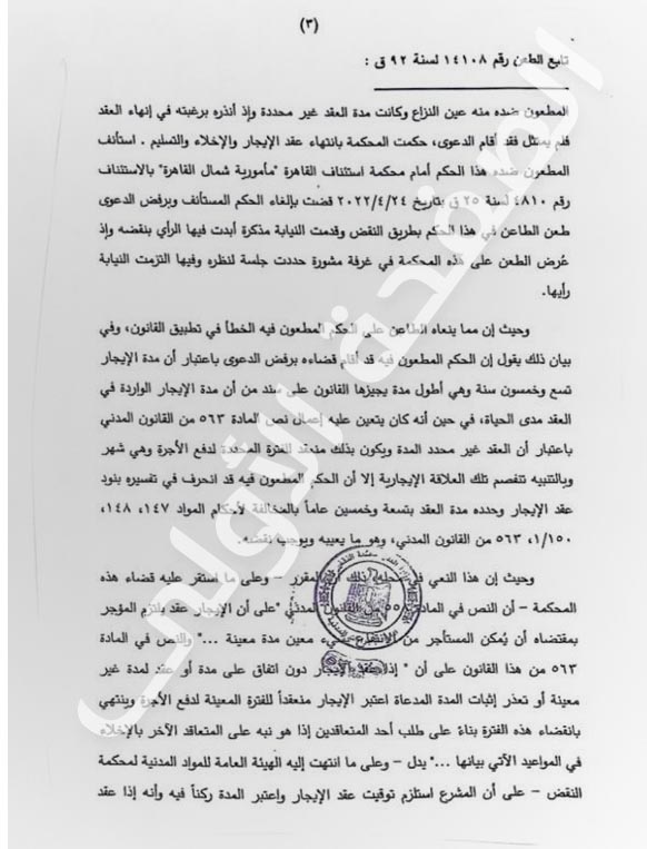 حكم تاريخي لمحكمة النقض بتخفيض مدة الإيجار الجديد من «مدى الحياة» لشهر