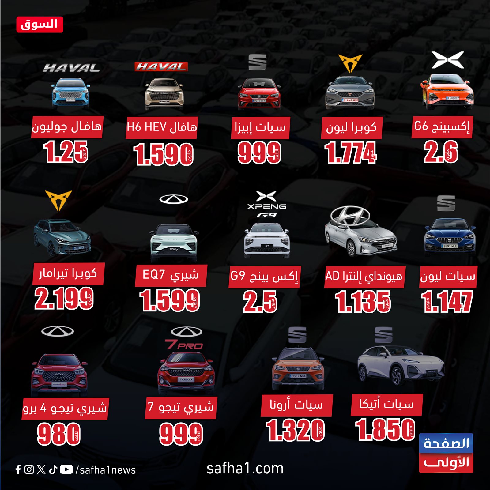 وتصدرت قائمة السيارات التي تراجعت أسعارها خلال سبتمبر الجاري سيارات هيونداي الكورية وسيات وكوبرا الإسبانية وهافال وشيري وإكسبينج الصينية.