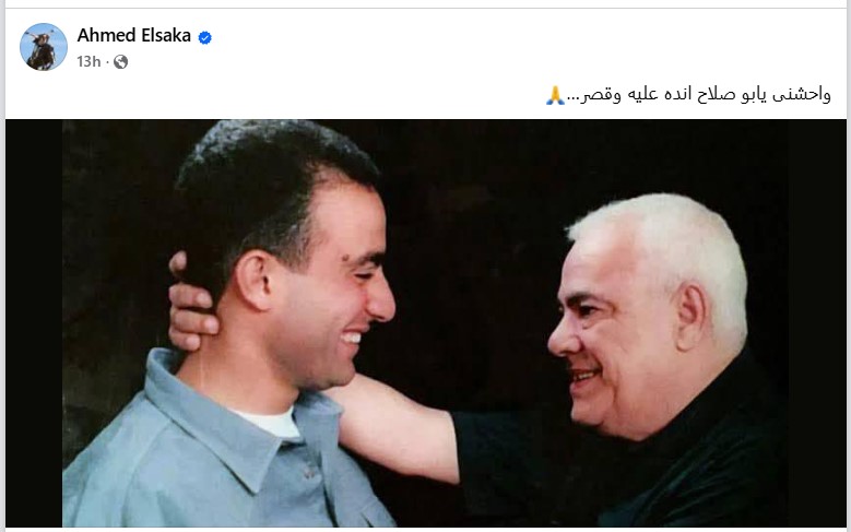 وعلق أحمد السقا على الصورة بكلمات مؤثرة: "واحشني يا أبوصلاح.. انده عليا وقصر".