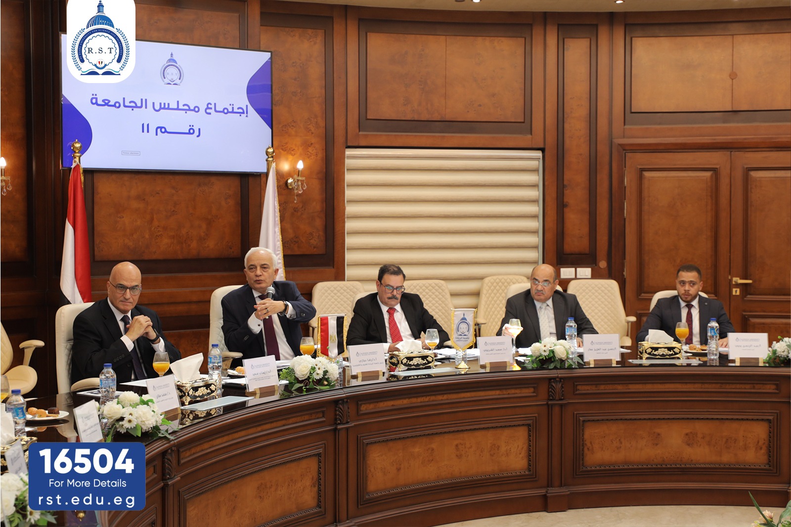 عقد مجلس جامعة الريادة للعلوم والتكنولوجيا RST برئاسة الأستاذ الدكتور رضا حجازي رئيس الجامعة اجتماعه الحادي عشر وحضره السادة النواب والعمداء وأمين عام الجامعة والامين المساعد والأعضاء من الخارج المهندس اسلام الفيشاوي عضو مجلس الشيوخ ورئيس مجلس أمناء مدينة السادات الاستاذ رفعت فياض مدير تحرير صحيفة اخبار اليوم والدكتور محمد صلاح وكيل وزارة التربية والتعليم بالمنوفية .