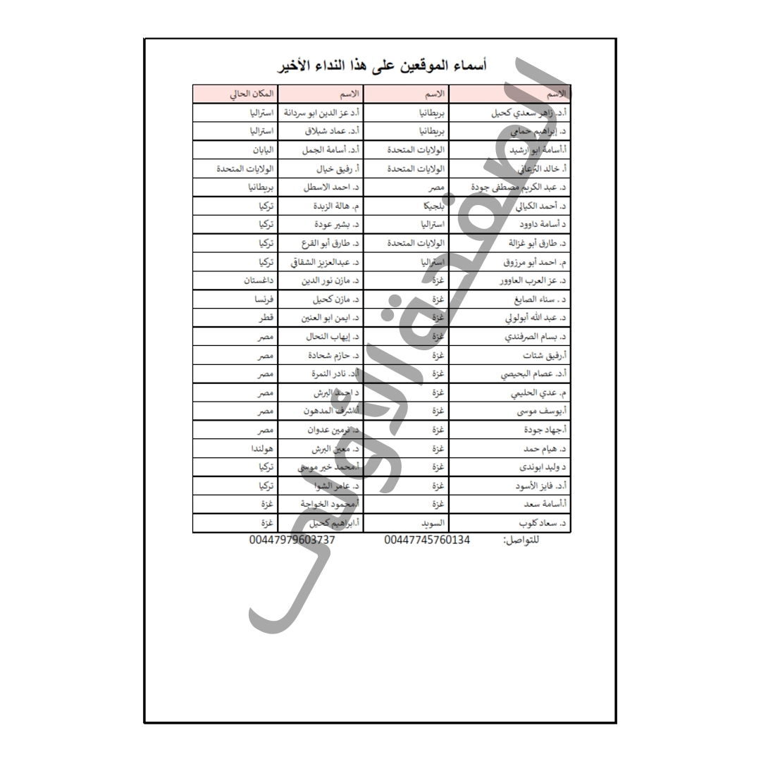 وأكد الموقعون على هذا النداء أنهم هم من أبناء هذا الشعب وجزء لا يتجزأ منه منهم من قدم وضحى في هذه الحرب الظالمة، والمشهود لهم بالوطنية والنقاء والانتماء، ومن المنحازين تماماً للحق الفلسطيني في وجه إجرام وغطرسة الاحتلال.