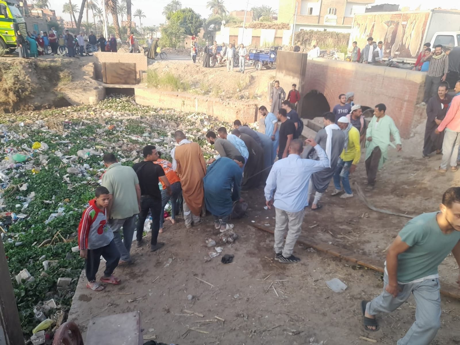 صعوبة استخراج الأطفال لامتلاء الترعة بالقمامة