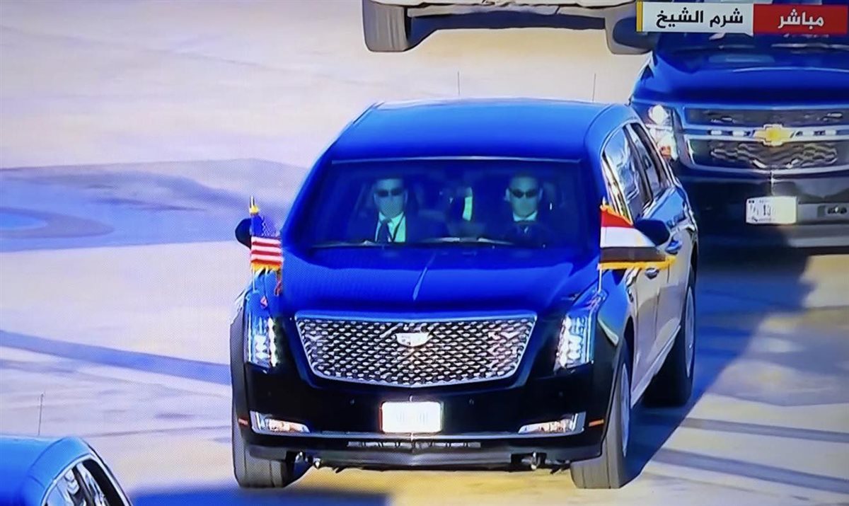 ظهرت سيارة ترامب الرئاسية الأمريكية لتخطف الأنظار مجددا في شوارع شرم الشيخ، حيث ظهرت ضمن الموكب الذي أقل الرئيس ترامب إلى مقر قمة السلام لوقف حرب غزة، والتي تعد هي الفريدة من نوعها .