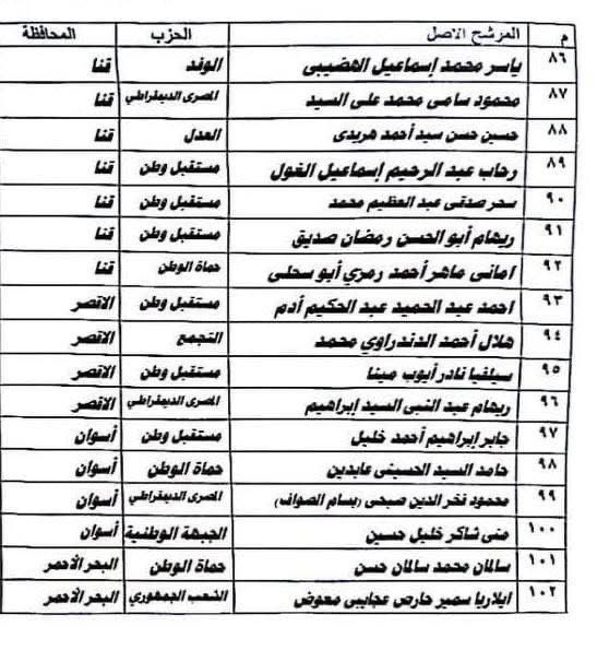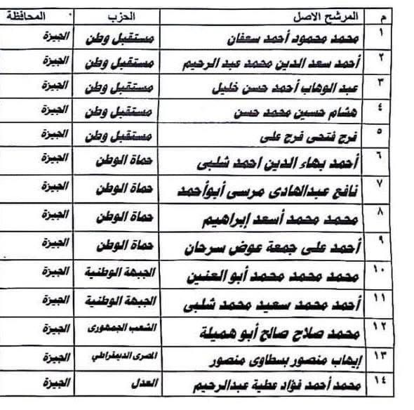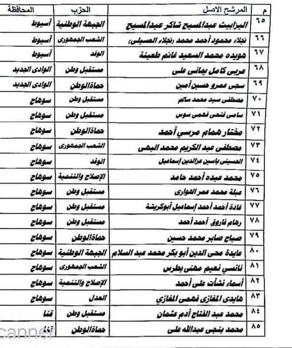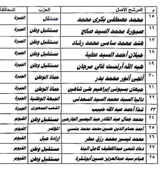 وأمس تقدمت القائمة الوطنية بأوراق ترشحها عن دائرة قطاع غرب الدلتا ومقرها مديرية أمن الإسكندرية والتي شملت 40 عضواً وهم: