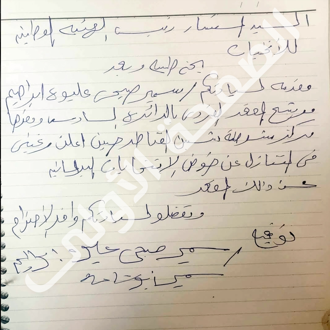 بالمستندات.. ننشر خطاب انسحاب سمير أبوشامة من انتخابات «النواب» بشبين القناطر