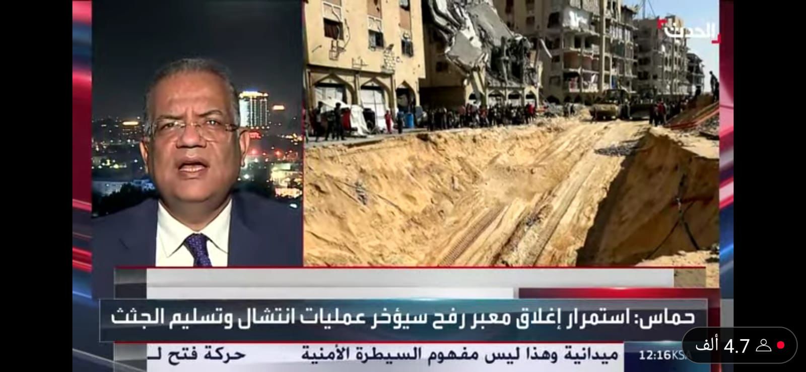 وتابع عضو مجلس الشيوخ أن إسرائيل تعلم جيدًا أن معبر رفح ليس بوابةً لعبور السلاح، وأن المساعدات الإنسانية بعد عبورها من الجانب المصري تمر عبر معبر كرم أبو سالم الخاضع للإشراف الإسرائيلي، موضحًا أن إغلاق المعبر يُعدّ وسيلة ضغطٍ إسرائيلية على حركة حماس للإسراع بتسليم الجثامين. وأضاف أن إسرائيل تستغل هذا الملف أمام المجتمع الدولي للتشويش على دور مصر، رغم أنه منذ بداية الحرب على القطاع لم يُدخل أيّ سلاح عبر المعبر.