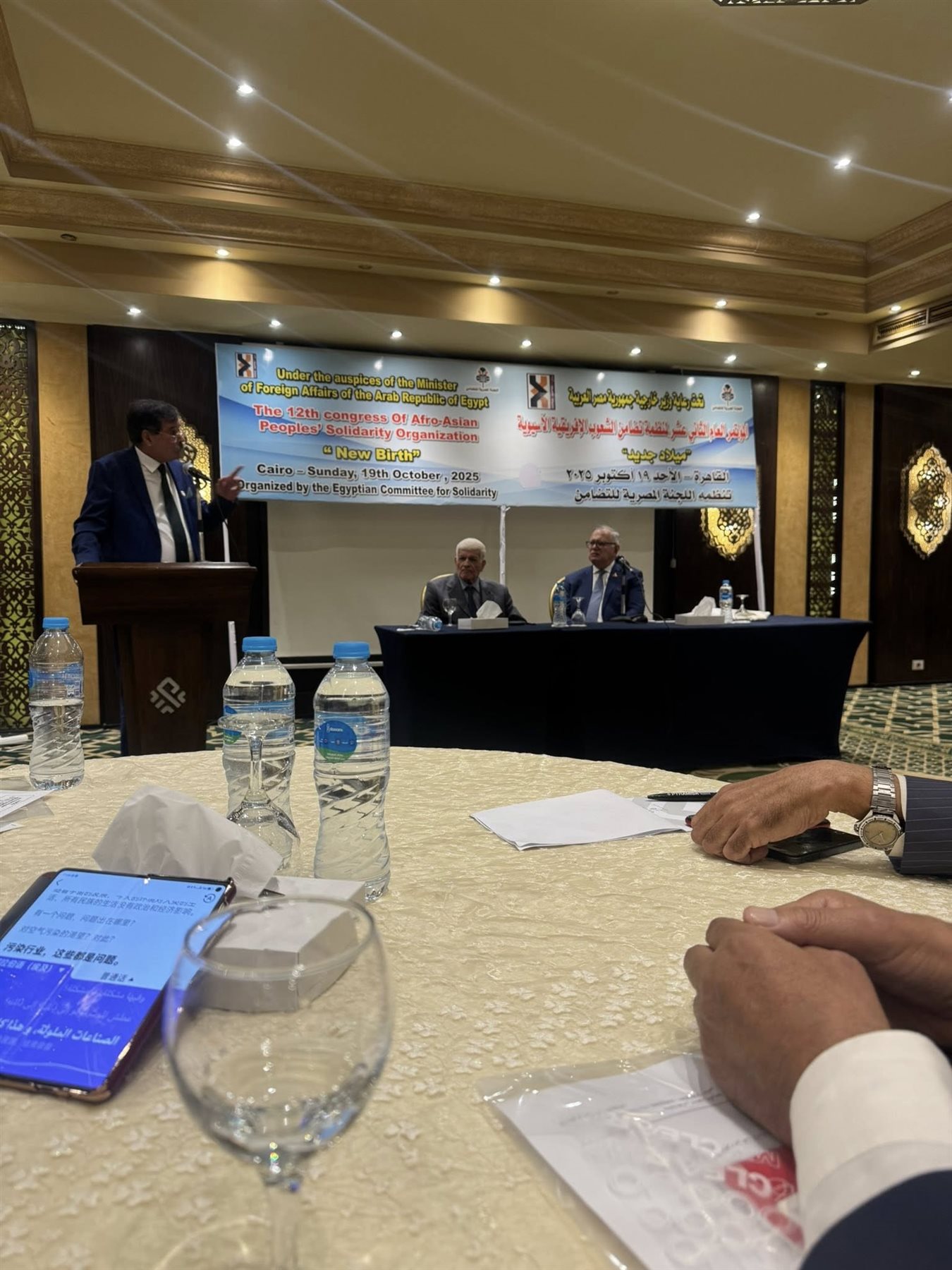 وأكد الكاتب الصحفي عبد القادر شهيب، رئيس اللجنة المصرية للتضامن الأفروآسيوي، إن المؤتمر جاء في لحظة فارقة تشهد فيها المنطقة تحولات كبيرة، وجاء جدول الأعمال للمصادقة على ترشيح اللجنة المصرية للسفير محمد العرابي، وزير الخارجية المصري الأسبق، رئيسًا للمنظمة، إلى جانب انتخاب سكرتير عام جديد للمنظمة من بين مرشحين اثنين، هما طالع السعود الأطلسي مرشح اللجنة المغربية، ومحمد إحسان مرشح اللجنة العراقية.