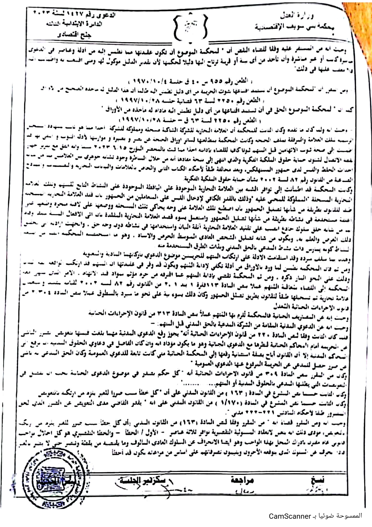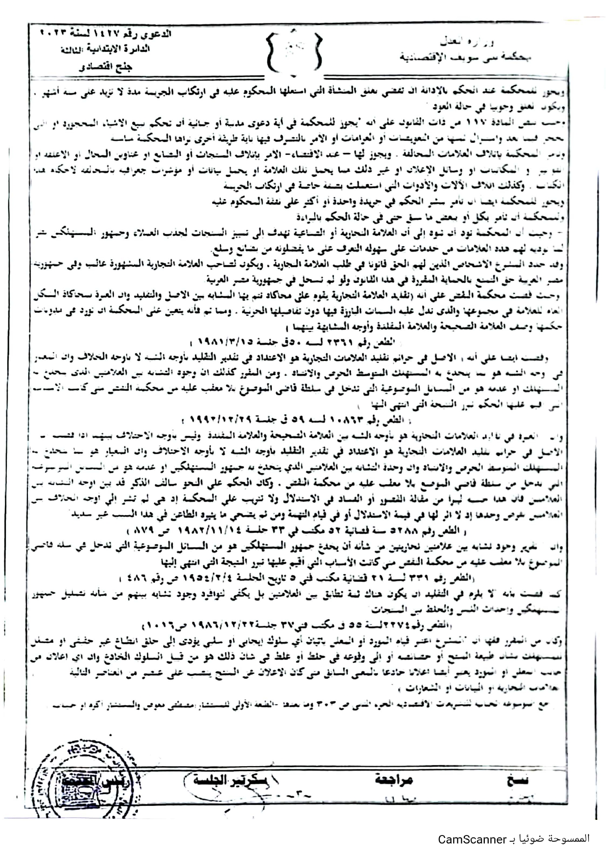 وكشف الحكم رقم 1427 لسنة 2023 جنح اقتصادي بني سويف، عن أن النيابة العامة أحالت صاحب المحل للمحاكمة أمام المحكمة الاقتصادية، لأنه قلد وزور علامة تجارية تم تسجيلها طبقا للقانون بطريقة تصل للجمهور، واستعمل بسوء قصد علامة تجارية مقلدة أو مزورة، وذلك بعدما تم أخذ عينة (مُنتج) وإرساله إلى مصلحة التسجيل التجاري لفحص العينة لتحديد مدى نشأته وتطابق بين العلامة الخاصة بالشاكى والعلامة المشكو فى حقها.