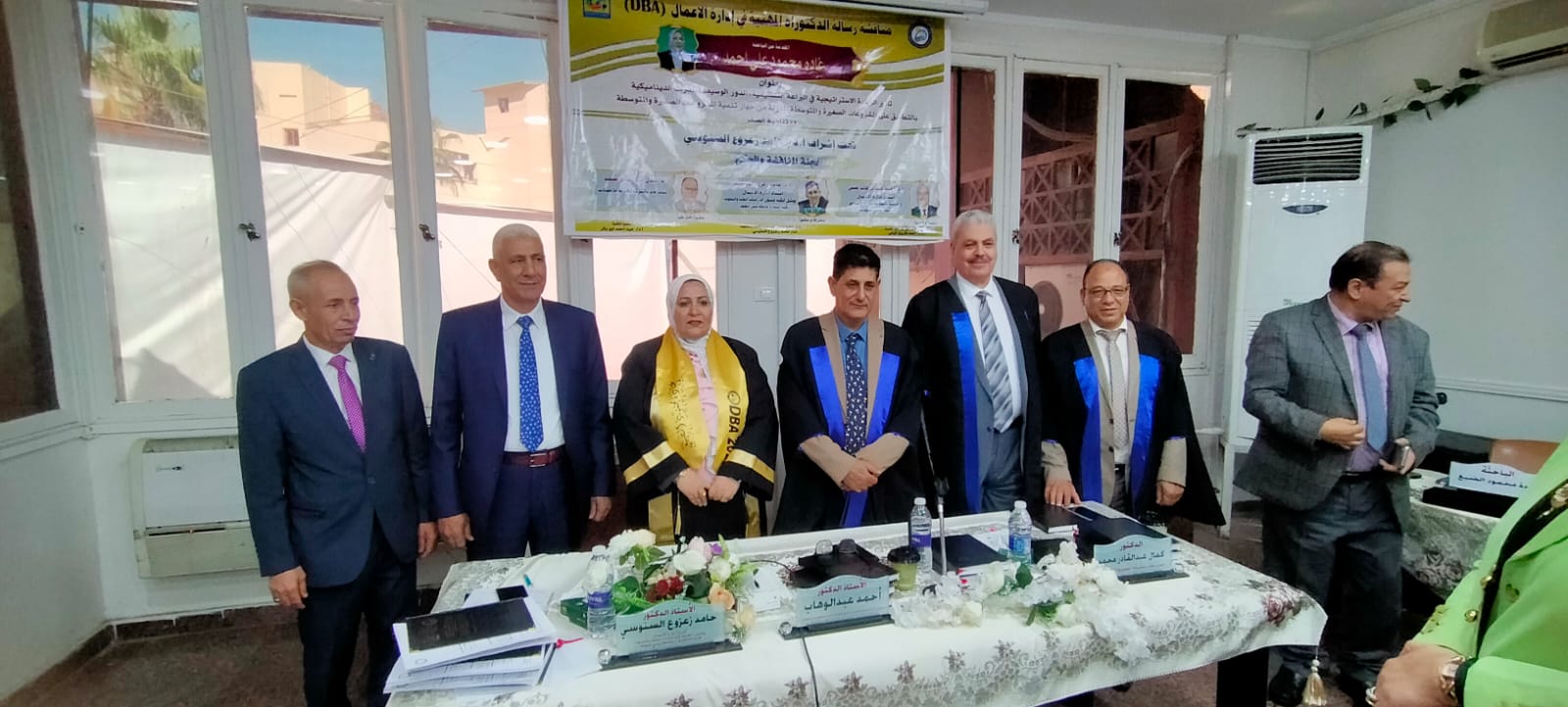 وتضم لجنة المناقشة؛ الأستاذ الدكتور أحمد عبدالوهاب حسن أستاذ إدارة الأعمال وعميد كلية التجارة السابق جامعة بني سويف رئيسا وعضوا، والأستاذ الدكتور حامد زعزوع السنوسى أستاذ إدارة الأعمال ووكيل الكلية لشئون الدراسات العليا والبحوث كلية التجارة جامعة بنى سويف، عضواً ومشرفا، والدكتور كمال عبدالقادر محمد مدير عام بالشركة المصرية للإتصالات عضوا من الخارج.
