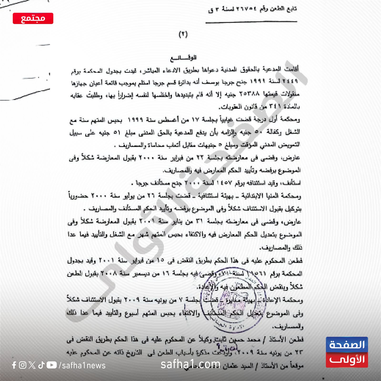 ولفتت محكمة النقض إلى أنه بذلك أحاطت الواقعة بالشك والريبة في صحة الإسناد، ما يوجب القضاء بالبراءة، وبناءً على براءة المتهم، تصبح الدعوى المدنية بغير أساس.