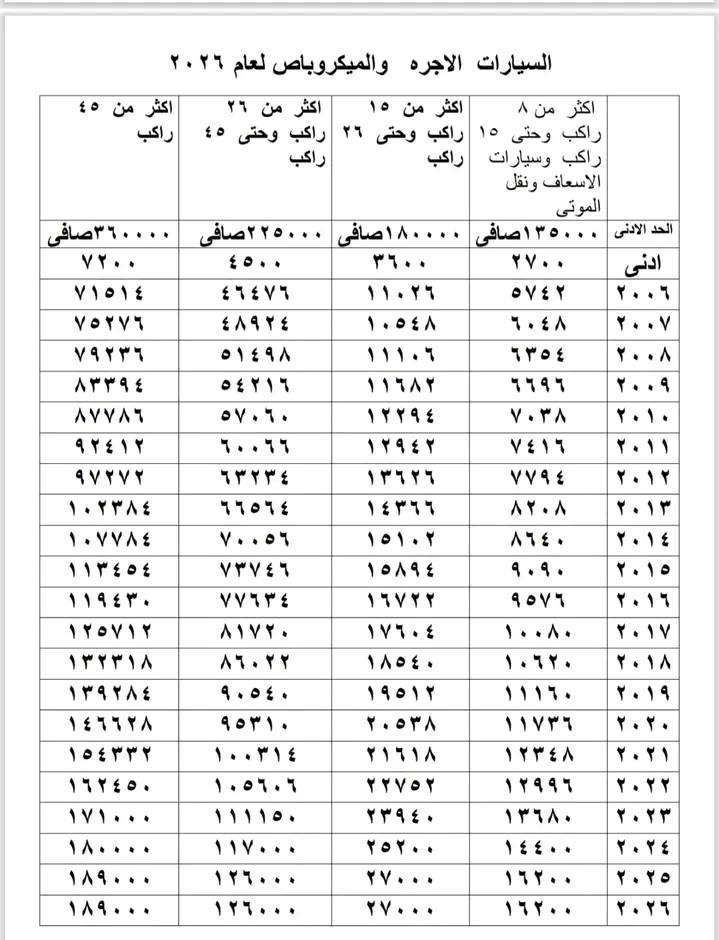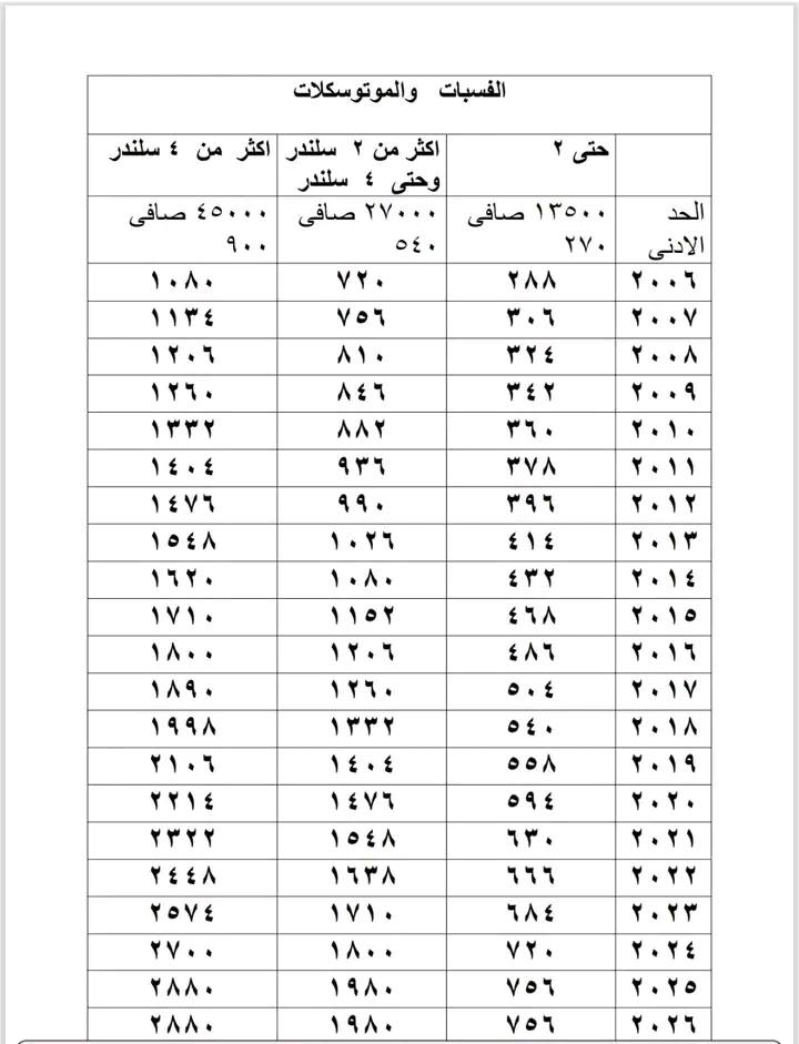 دليل رسوم تراخيص السيارات في 2026 من الـ1300سي سي إلى النقل الثقيل