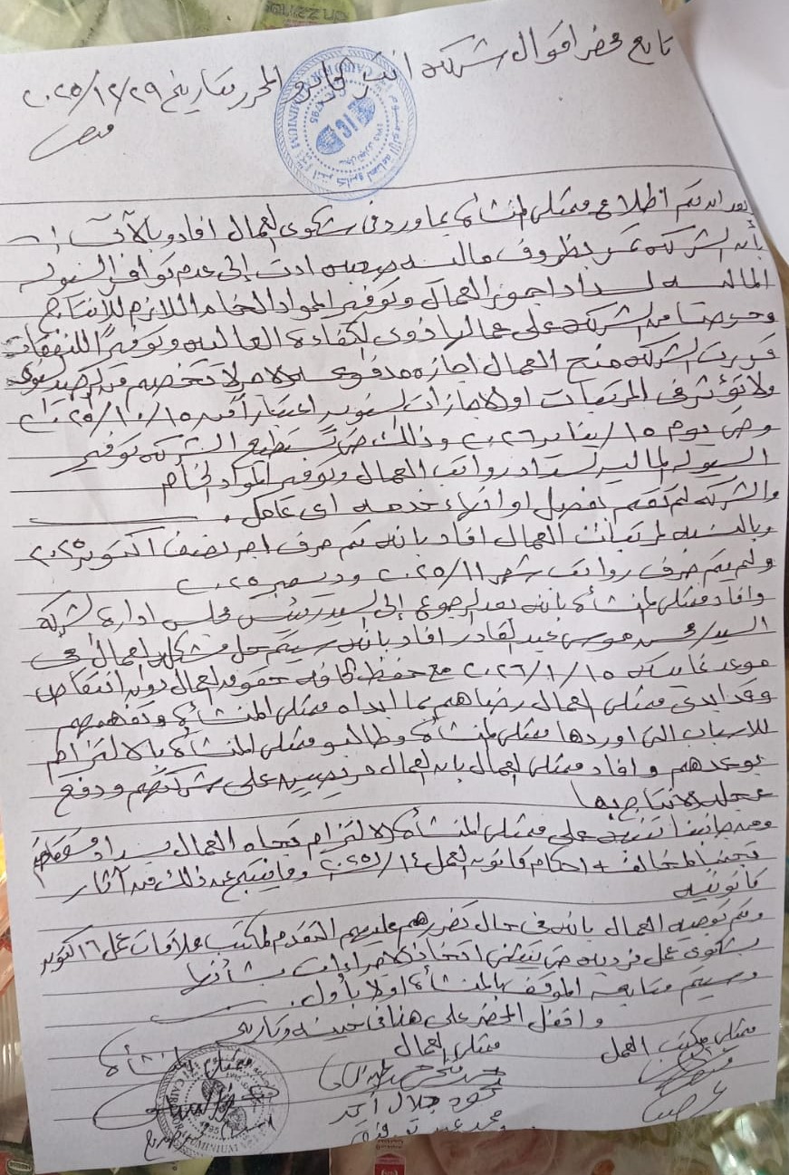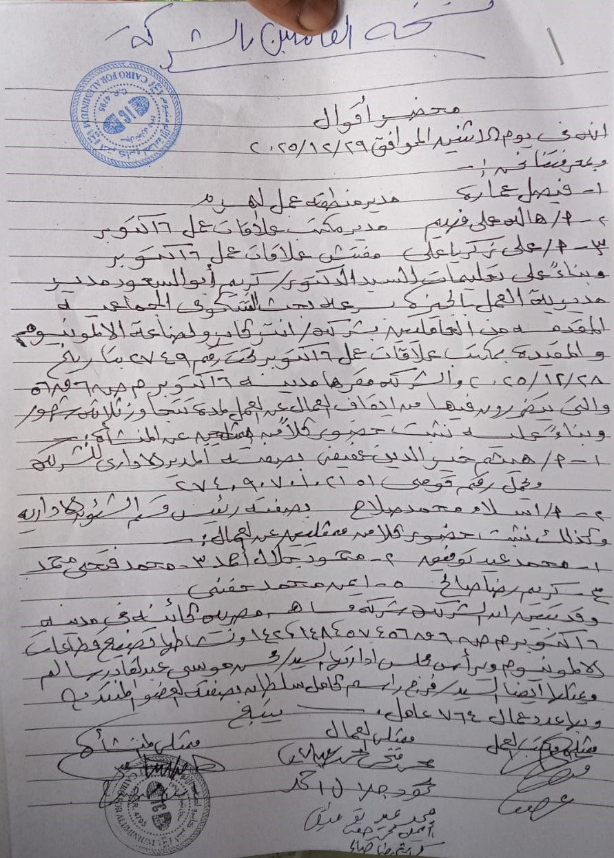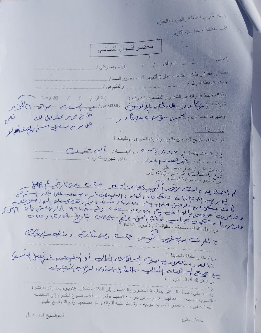 وأكد تقديم العاملين شكاوى أخرى إلى منظومة الشكاوى في مجلس الوزراء، إضافة إلى تحرير محاضر في قسم ثان أكتوبر، منها المحضر رقم 9638 إداري بتاريخ 29 ديسمبر 2025.