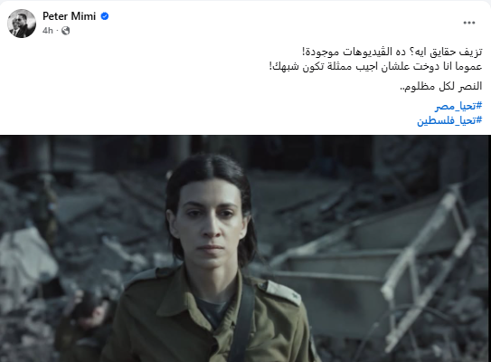 بيتر ميمي.. «يصفع» متحدثة جيش الاحتلال: «دوخت عشان ألاقي ممثلة تكون شبهك»