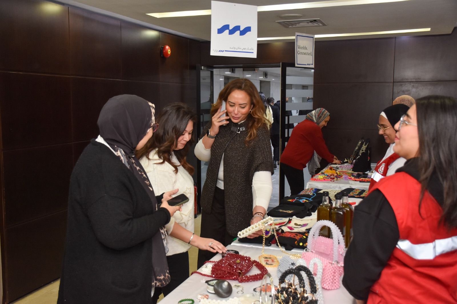 كما تضمن المعرض تجربة تفاعلية، حيث قامت بعض العارضات بتصنيع منتجات يدويًا داخل مقر البنك باستخدام ماكينات الخياطة، مما أتاح للموظفين التعرف عن قرب على مراحل الإنتاج ودعم العارضات من خلال شراء المنتجات.