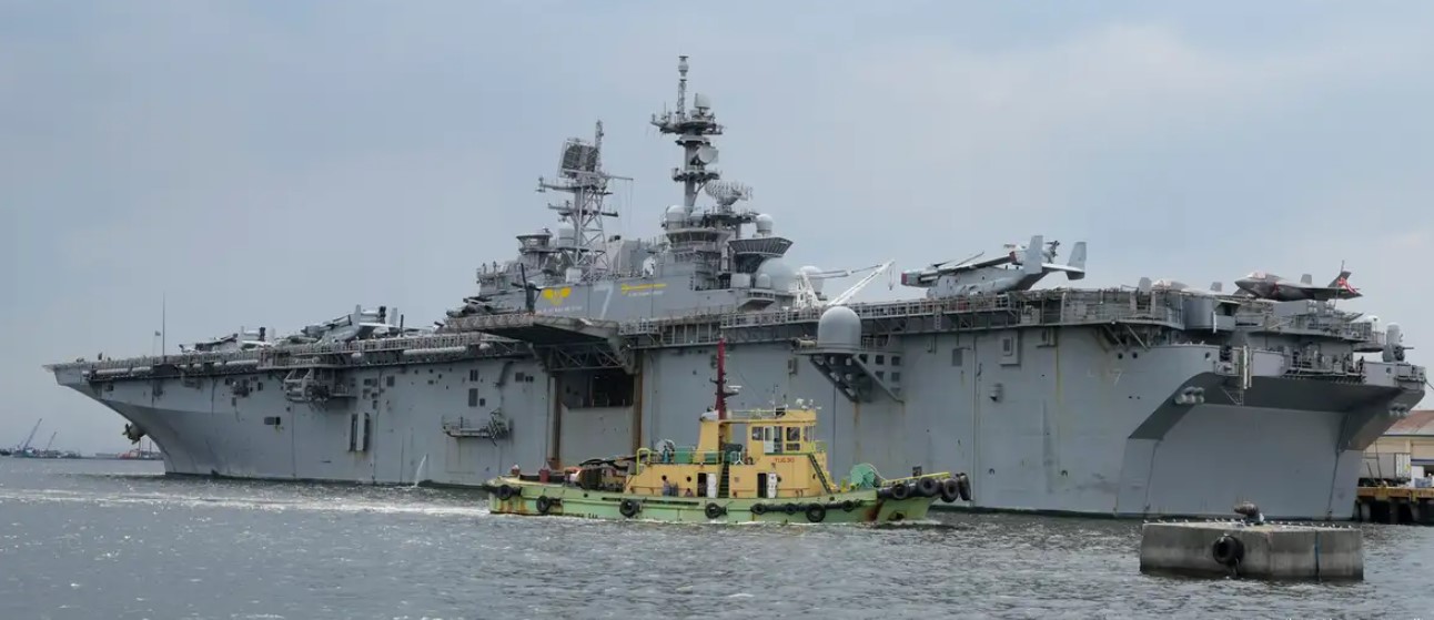 تعد السفينة الهجومية البرمائية "يو إس إس تريبولي" من أكبر سفن البحرية الأمريكية في غرب المحيط الهادئ، ويبلغ طولها 257 مترًا، وتُصنَّف فعليًا كنوع من حاملات الطائرات الصغيرة. وتضمّ على متنها عددًا من الطائرات، من بينها المقاتلات الشبحية F‑35B القادرة على الإقلاع القصير والهبوط العمودي، وطائرات AV‑8B، ومروحيات النقل CH‑54K، ومروحيات الهجوم AH‑1Z، إضافة إلى الطائرات الهجينة MV‑22B أوسبري.