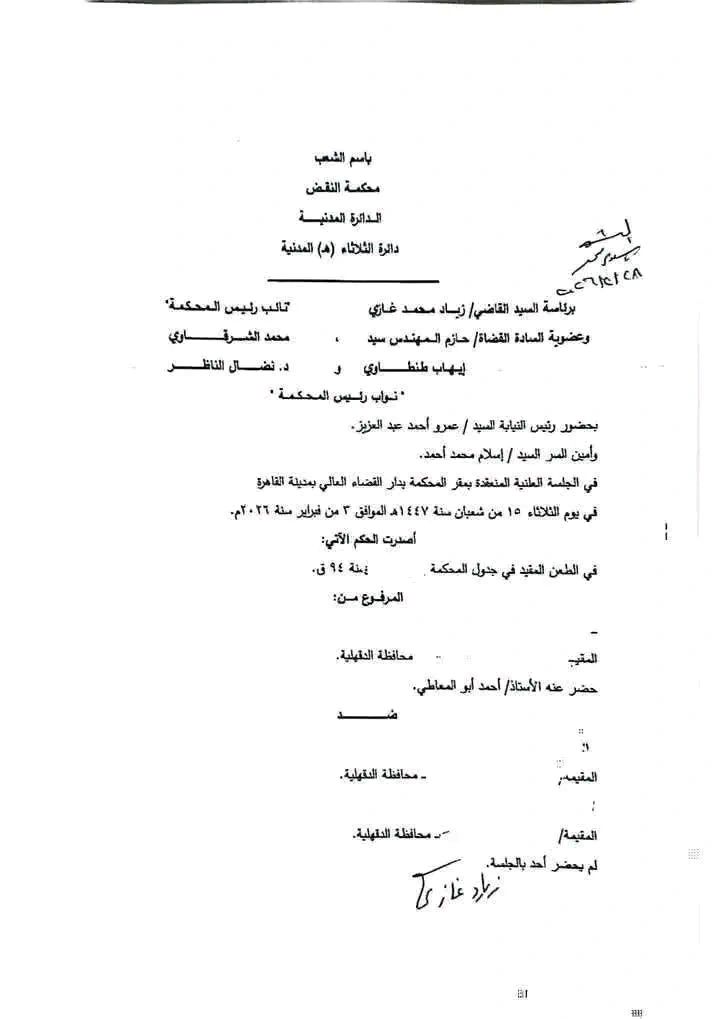 أكدت محكمة النقض مبدأ قضائيا حاسما، وهو أنه يمكن الاعتداد بإيصالات المرافق كسند للملكية، وذلك في حالة ضياع أصل عقد البيع، وتقديم صورة طبق الأصل منه، وذلك في الحكم رقم 5095 لسنة 94 ق، والصادر بتاريخ 3 فبراير 2026.