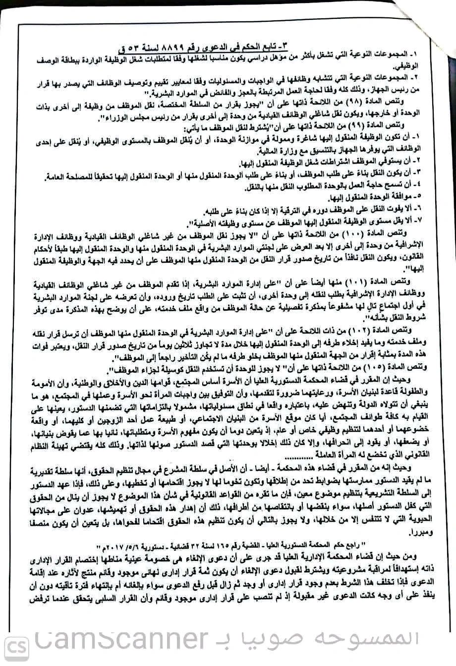 ولما كان الثابت من الأوراق أن المدعية تعمل بوظيفة فني تمريض بالإدارة العامة للمستشفيات الجامعية بطنطا بدءاً من 25/3/2014 م، وتشغل حالياً المستوى الوظيفي الثالث، ومتزوجة وأم لأبنائها من زوجها وتقيم مع زوجها بقرية الكوم الطويل مركز بيلا محافظة كفر الشيخ، وإذ تطالب بنقلها من الإدارة العامة للمستشفيات الجامعية بطنطا إلى مديرية الشؤون الصحية بكفر الشيخ - بحسبانها الأقرب لمحل إقامتها حرصاً وتحقيقاً للم شمل أسرتها والاعتناء بها، وقد تقدمت بالعديد من الطلبات لنقلها إلا أنها لم تجد آذاناً صاغية، وحيث إن الدولة المصرية بدساتيرها كفلت لم شمل الأسرة وضمنت ضرورة رعاية الأطفال رعاية شاملة وتهيئة الظروف المناسبة لتنشئتهم التنشئة الصحيحة من كافة النواحي في إطار من الحرية والكرامة الإنسانية.