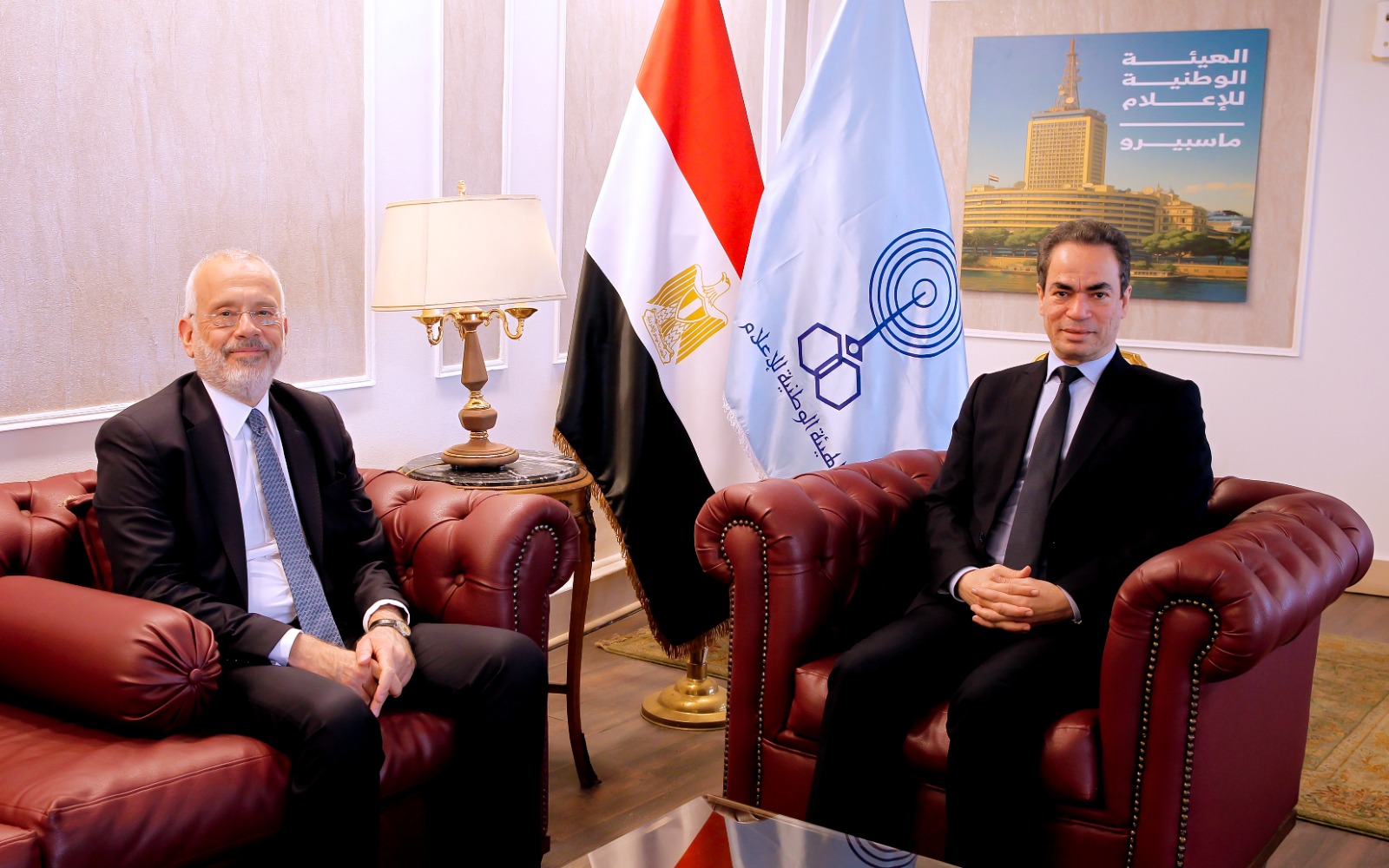 استقبل الكاتب أحمد المسلماني رئيس الهيئة الوطنية للإعلام السفير اليوناني في القاهرة نيقولاوس بابا جيورجيو بـ«ماسبيرو» ظهر اليوم، أشاد السفير اليوناني بالعلاقات المصرية اليونانية التي تشهد مرحلة تعاون وتفاهم تم تتويجها برفع العلاقات الثنائية إلى مستوي الشراكة الاستراتيجية، وأعلن السفير اليوناني عن الاستعداد للتعاون بين التليفزيون المصري والتليفزيون اليوناني، وتبادل المحتوي في مجالات الدراما والوثائقيات والموسيقي.