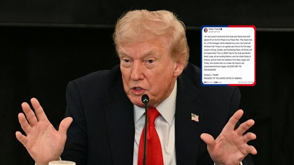 أعلن الرئيس الأمريكي دونالد ترامب عن توصل حماس وإسرائيل إلى اتفاق بشأن المرحلة الأولى من اتفاق السلام.. وكتب ترامب على منصته تروث سوشال: "يسعدني أن أعلن بكل فخر أن إسرائيل وحماس قد وقّعتا على المرحلة الأولى من خطة السلام التي وضعناها.. مما يعني أن جميع الرهائن سيتم إطلاق سراحهم قريبًا جدًا، وأن إسرائيل ستسحب قواتها إلى خط متفق عليه، كخطوة أولى نحو سلام قوي، مستدام، ودائم.. وسيتم التعامل مع جميع الأطراف بعدالة.. وتوجه ترامب بالشكر إلى الوسطاء من قطر ومصر وتركيا الذين تعاونوا معنا لتحقيق هذا الحدث التاريخي وغير المسبوق".. وألمح ترامب إلى أنه سيتوجه للشرق الأوسط السبت أو الأحد، ووفقا للإعلام الأمريكي فإن ترامب سيجري يوم غد الجمعة الكشف الصحي الدوري، الذي يجرى دائماً للرؤساء الأمريكان للاطمئنان على أوضاعهم الصحية.