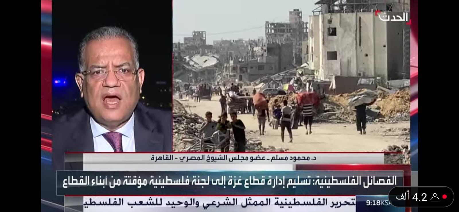 وأكد مسلم أن ترامب اعترف أن إسرائيل في عزلة، واعتقد أن حماس ستستجيب لما يتعلق ببند السلاح والجميع يعلم مراوغتها لكن في النهاية ستلتزم وتستجيب، طالما أن هناك إنهاء للحرب، وعلى حماس أن تلتحف ضمن الفصائل الفلسطينية والسلطة الفلسطينية لأن أي عدم التزام ببنود الاتفاق سيؤثر سلبا عليه و لا يجب أن نترك فرصة للاحتلال حتى يستغلها".